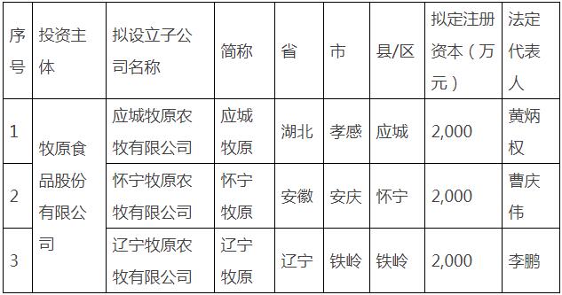 牧原股份11月25日公布關于在應城市、懷寧縣、鐵嶺縣設立子公司的公告。