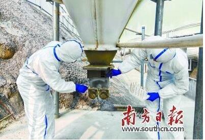 清遠海關關員在進境種豬隔離場開展環(huán)境采樣。廣州海關供圖