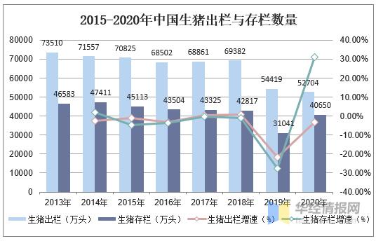 生豬存欄持續(xù)較快恢復(fù),出欄降幅明顯收窄。2020年,各地積極落實(shí)生豬穩(wěn)產(chǎn)保供各項(xiàng)政策措施,新建、擴(kuò)建養(yǎng)殖場陸續(xù)建成投產(chǎn),有力促進(jìn)生豬產(chǎn)能持續(xù)回升。2020年末全國生豬存欄40650萬頭,比上年末增加9610萬頭,同比增長30.96%。2020年,全國生豬出欄52704萬頭,比上年減少1715萬頭,下降3.15%。