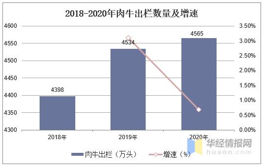 2020年,全國肉牛出欄4565萬頭,比上年增加32萬頭,同比增長了0.68%。