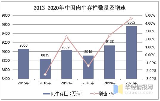 2020年末全國肉牛存欄9562萬頭,比上年末增加424萬頭,同比增長了4.64%。
