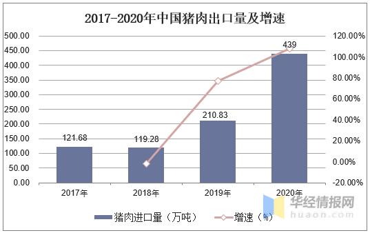 豬肉是我國居民食用的主要肉類之一。2020年我國豬肉出口量增長幅度明顯,截止至年末,出口量達(dá)到439萬噸,同比增長了108.22%。