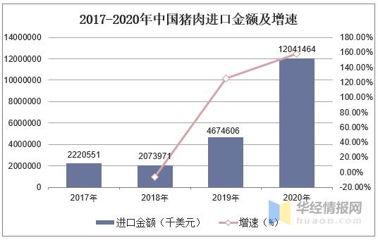 2019年我國豬肉進(jìn)口金額增長幅度達(dá)到125.39%,2020年我國豬肉進(jìn)口金額為1204146.4萬美元,同比增長了157.6%。