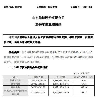 公告顯示,仙壇股份總資產(chǎn)為5,462,314,277.85元,比本報告期初增長26.51%;基本每股收益為0.76元,上年同期為2.16元。