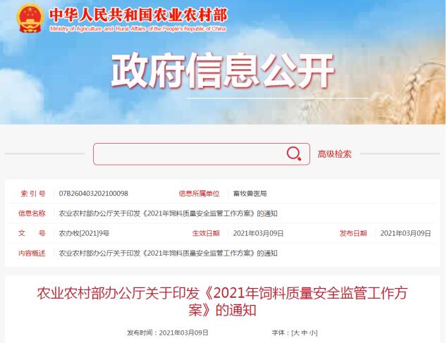 2021年飼料質(zhì)量安全監(jiān)管工作方案