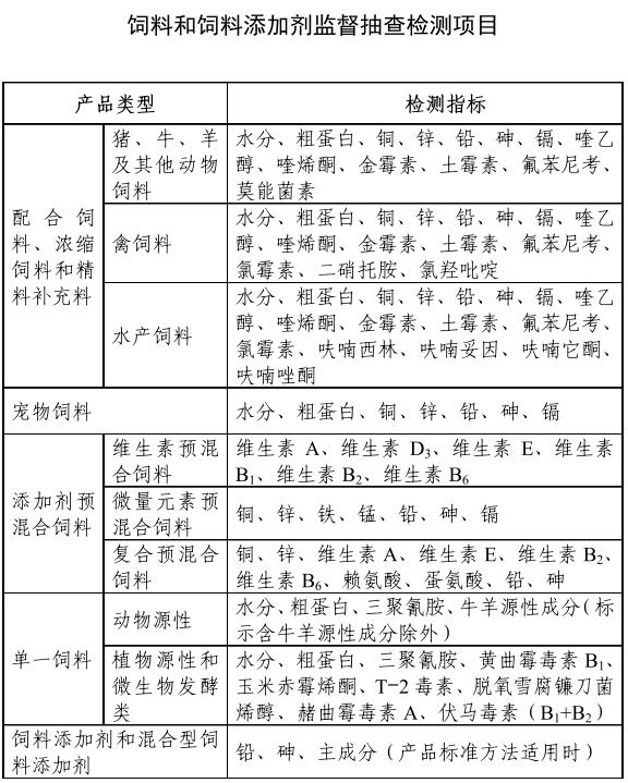 檢測項目應(yīng)覆蓋質(zhì)量、衛(wèi)生、藥物及非法添加物等指標(詳見附件2)。質(zhì)量指標包括水分、粗蛋白等產(chǎn)品質(zhì)量保證指標以及