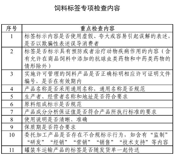 三是組織開展飼料標簽專項檢查。重點關(guān)注混合型飼料添加劑產(chǎn)品、可飼用天然植物原料、植物提取物類飼料添加劑等。檢查內(nèi)容詳見附件4。在專項檢查中發(fā)現(xiàn)違法違規(guī)行為的,要依法依規(guī)處理。各地要將飼料標簽專項檢查和日常監(jiān)管相結(jié)合,形成長效機制。各省級畜牧獸醫(yī)部門于2021年7月31日前將本省飼料標簽專項檢查工作情況報送我部畜牧獸醫(yī)局。