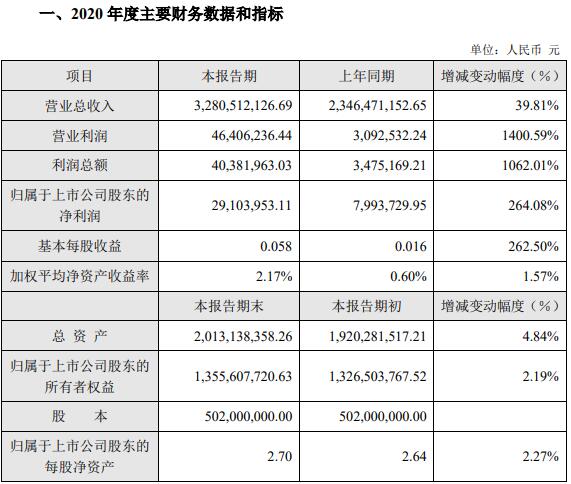 得利斯4月15日公布2020年度業(yè)績快報。報告期內(nèi),公司實現(xiàn)營業(yè)總收入328,051.21萬元,比上年同期增長39.81%;實現(xiàn)營業(yè)利潤4,640.62萬元,比上年同期增長1,400.59%;實現(xiàn)利潤總額4,038.20萬元,比上年同期增長1,062.01%;實現(xiàn)歸屬于上市公司股東的凈利潤2,910.40萬元,比上年同期增長264.08%。