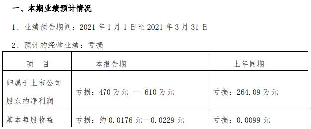 正虹科技4月15日發(fā)布業(yè)績預(yù)告,公司預(yù)計2021年第一季度歸屬于上市公司股東的凈虧損470萬元~610萬元,基本每股收益虧損約0.0176元~0.0229元。
