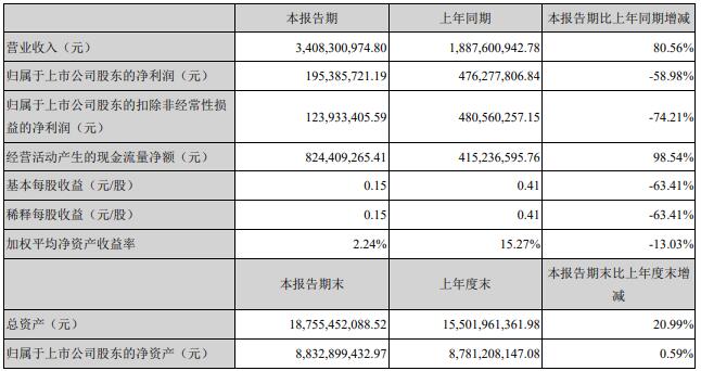 天邦股份4月28日晚間發(fā)布一季度業(yè)績公告。2021年第一季度營收約34.08億元,同比增長80.56%;凈利潤約1.95億元,同比下降58.98%;基本每股收益0.15元,同比下降63.41%。