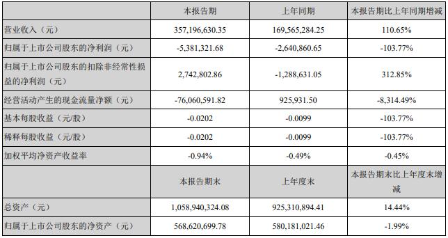 正虹科技4月28日發(fā)布一季度業(yè)績公告。2021年第一季度營收約3.57億元,同比增長110.65%;凈虧損約538萬元,同比下降103.77%;基本每股收益-0.0202元,同比下降103.77%。