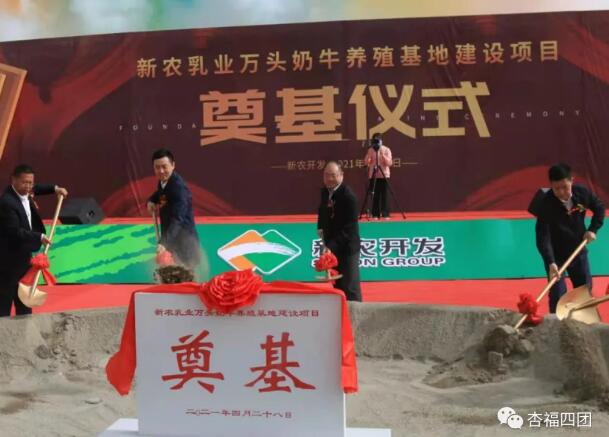 4月28日,四團(tuán)舉行新農(nóng)乳業(yè)萬頭奶牛養(yǎng)殖基地建設(shè)項目奠基儀式,標(biāo)志著4.7億兵團(tuán)南疆地區(qū)優(yōu)質(zhì)高產(chǎn)荷斯坦奶牛標(biāo)準(zhǔn)化養(yǎng)殖示范基地在四團(tuán)開工建設(shè)。