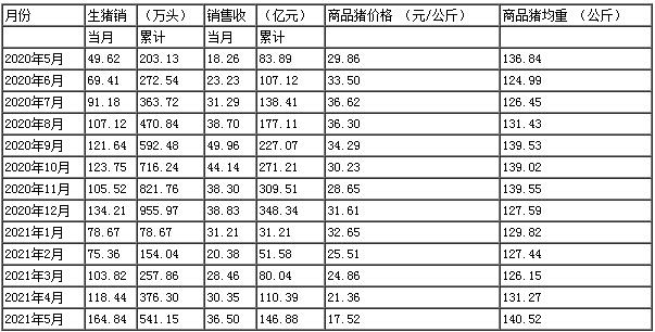 2021年1-5月,公司生豬累計(jì)銷售數(shù)量和銷售收入同比增長較大主要是由于生豬產(chǎn)能釋放所致。