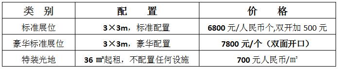 標(biāo)展配置:一張洽談桌、兩把椅子、三面白色圍板、參展企業(yè)門楣、5A/220V電源及插座一個。