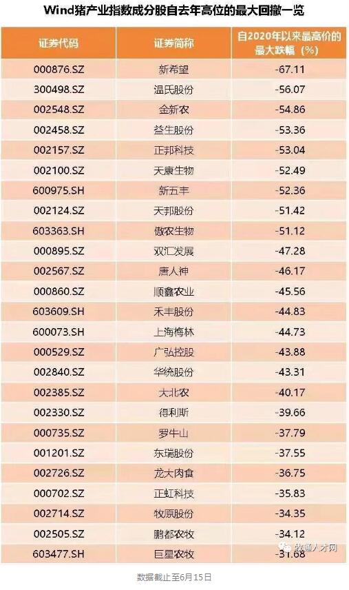 在考慮權(quán)息因素后,正邦、溫氏、新希望、金新農(nóng)、天康生物、新五豐、天邦股份、傲農(nóng)生物等多只相關(guān)股票自去年高位的最大回撤幅度超50%,也就是說(shuō)一度腰斬。