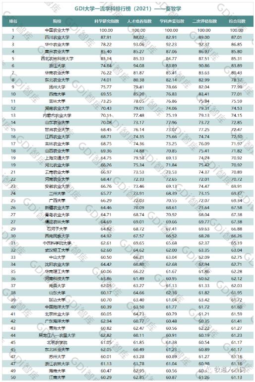 此次畜牧學(xué)排名僅次于中國(guó)農(nóng)業(yè)大學(xué),是其學(xué)科實(shí)力的代表。