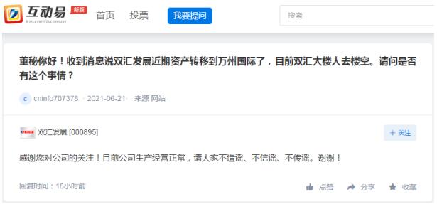 雙匯回應(yīng)資產(chǎn)轉(zhuǎn)移至萬洲國際:公司生產(chǎn)經(jīng)營正常,請大家不造謠、不信謠