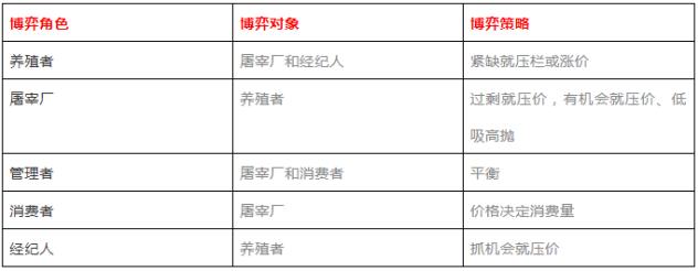 在中國的豬肉市場上,有五個角色在參與博弈,每個決策基于自己的角色和利益而動作。