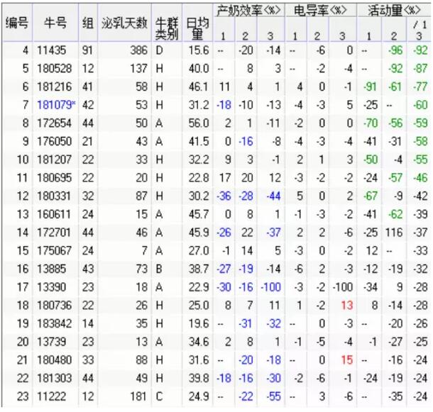 每天要有專職的獸醫(yī)人員去查看偏差報告,主要關(guān)注兩個指標(biāo),如果是二代計步器關(guān)注趴臥時間和活動量,如果是一代計步器只能關(guān)注活動量并通過電導(dǎo)率和班次產(chǎn)奶量來綜合分析,初步判斷出蹄病?;蛘呤瞧渌膊?,然后下舍找到該牛認(rèn)真仔細檢查直至找到真正的致病因。了解兩個概念,活動量:本班次計步器累計的總步數(shù)減去上班次累計的總步數(shù)的差值,除以本班次與上班次擠奶的間隔時間,得到奶牛的每小時活動量?;顒恿科睿夯顒恿颗c當(dāng)班次前10天平均值比較,上升或下降的偏差百分比,在健康參數(shù)中設(shè)置的可接受的下降臨界值。