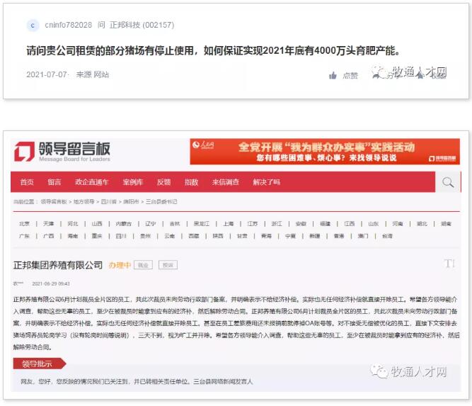 不僅退租部分養(yǎng)殖場,裁員風波也因其成本控制屢禁不止,乃至鬧上了人民網(wǎng)的領(lǐng)導留言板版塊: