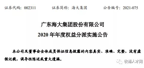 值得一提的是,海大集團日前公布了2020年年度分紅實施方案:以公司總股本16.51億股為基數(shù),向全體股東每10股派發(fā)現(xiàn)金紅利3.2元(含稅,稅后2.88元),合計派發(fā)現(xiàn)金紅利總額為5.28億元。