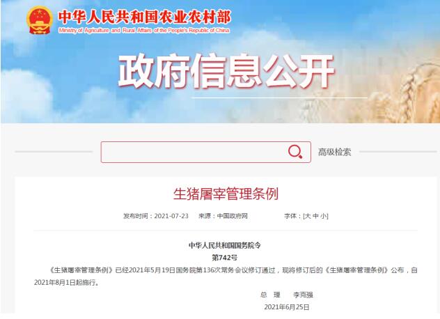 第三條 國務院農(nóng)業(yè)農(nóng)村主管部門負責全國生豬屠宰的行業(yè)管理工作。縣級以上地方人民政府農(nóng)業(yè)農(nóng)村主管部門負責本行政區(qū)域內(nèi)生豬屠宰活動的監(jiān)督管理。