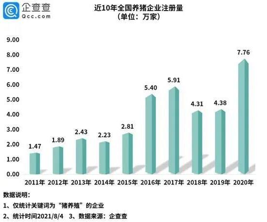 剛剛過去的7月,災情疊加疫情持續(xù)牽動市場神經(jīng),特別是養(yǎng)豬大省河南的暴雨洪災,不僅造成重大人員傷亡,也對全國畜牧行業(yè)帶來一定不利影響,據(jù)農(nóng)業(yè)農(nóng)村部的數(shù)據(jù)監(jiān)測,7月末全國活豬均價同比下降近六成。企查查數(shù)據(jù)顯示,目前我國現(xiàn)存養(yǎng)豬企業(yè)37.65萬家,從地域分布來看,河北、云南和山西,分別以3.74萬家、3.28萬家和2.57萬家位列前三。從年注冊量來看,2020年相關企業(yè)注冊量達7.76萬家,同比增長77%;2021年上半年共新增2.6萬家,同比下降31%。