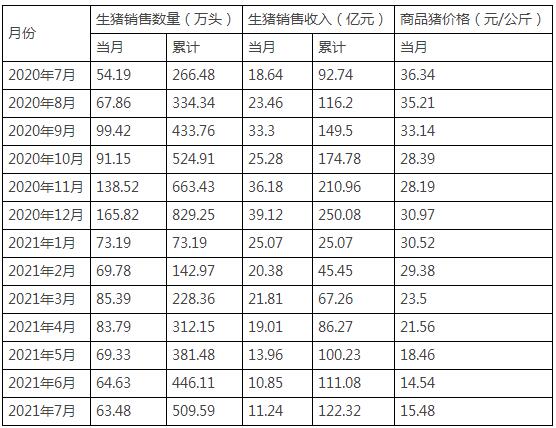 新希望8月9日公布2021年7月生豬銷(xiāo)售情況簡(jiǎn)報(bào)。公司2021年7月銷(xiāo)售生豬63.48萬(wàn)頭,環(huán)比變動(dòng)-1.78%,同比變動(dòng)17.14%;收入為11.24億元,環(huán)比變動(dòng)3.59%,同比變動(dòng)-39.70%;商品豬銷(xiāo)售均價(jià)15.48元/公斤,環(huán)比變動(dòng)6.46%,同比變動(dòng)-57.40%。