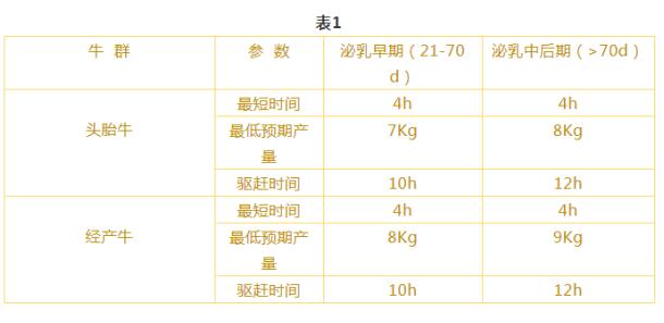 VMS系統(tǒng)能力可承受泌乳牛55-75頭。從表1可以看到,泌乳早期,頭胎牛最低預(yù)期產(chǎn)量7公斤左右,經(jīng)產(chǎn)牛最低預(yù)期產(chǎn)量8公斤左右;泌乳中后期,頭胎牛8公斤左右,經(jīng)產(chǎn)牛9公斤左右。頭胎牛和經(jīng)產(chǎn)牛的最短擠奶時間和驅(qū)趕時間都差不多。