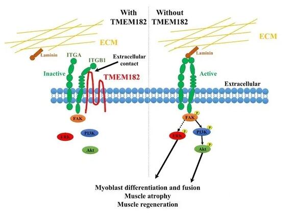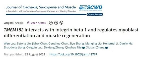 華南農(nóng)業(yè)大學(xué)動物科學(xué)學(xué)院家禽遺傳育種研究團(tuán)隊在肌肉研究領(lǐng)域知名雜志Journal of Cachexia, Sarcopenia and Muscle(IF=12.91)在線發(fā)表了題為“TMEM182 interacts with integrin β1 and regulates myoblast differentiation and muscle regeneration”的研究論文。該研究成果發(fā)現(xiàn)了一個可影響肉雞產(chǎn)肉和脂肪沉積的關(guān)鍵基因TMEM182,并對該基因的作用機(jī)制進(jìn)行了詳細(xì)解析。