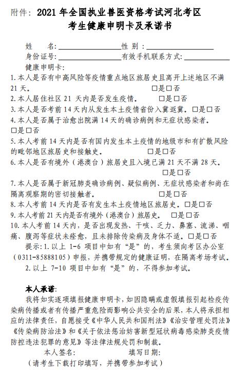 河北——2021年全國執(zhí)業(yè)獸醫(yī)資格考試河北考區(qū)疫情防控告知書