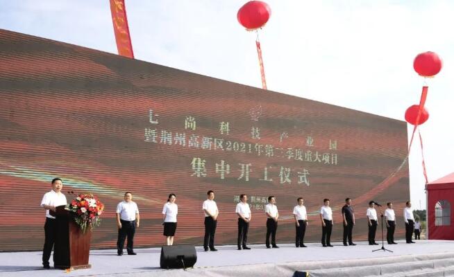 荊州市委常委、統(tǒng)戰(zhàn)部部長李水彬宣布七尚科技產(chǎn)業(yè)園暨荊州高新區(qū)2021年第三季度重大項(xiàng)目開工。