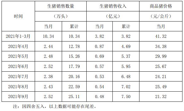 2021年9月份,公司商品豬銷售均價21.32元/公斤,環(huán)比下降16.33%。