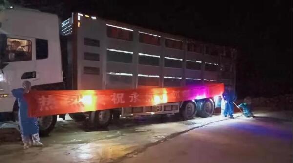 引種期間,為保障各項工作順利開展,在當?shù)卣闹С趾图瘓F養(yǎng)豬產(chǎn)業(yè)各部門的通力合作下,永新傲創(chuàng)成立了引種專項團隊,從引種計劃制定、調(diào)運手續(xù)辦理、豬只檢測、車輛洗消到人員調(diào)度等環(huán)節(jié)精心籌劃,分工協(xié)作,確保各環(huán)節(jié)的無縫銜接,保障豬只安全、順利抵達永新傲創(chuàng)基地。