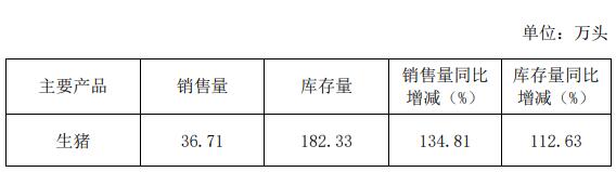2021年1-10月,公司累計銷售生豬241.83萬頭,銷售量同比增長161.48%。