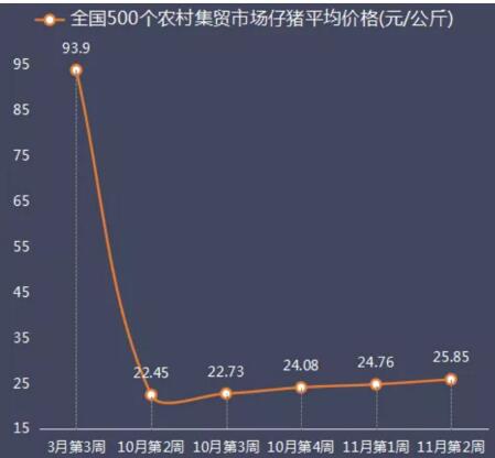 農(nóng)業(yè)農(nóng)村部畜牧獸醫(yī)局11月16日披露:據(jù)對(duì)全國(guó)500個(gè)縣集貿(mào)市場(chǎng)的定點(diǎn)監(jiān)測(cè),11月份第2周(采集日為11月10日)全國(guó)仔豬平均價(jià)格25.85元/公斤,比前一周上漲4.4%,同比下降70.1%。浙江、陜西、湖南、廣東、河北、安徽等26個(gè)省份仔豬價(jià)格上漲,天津、海南、內(nèi)蒙古等3個(gè)省份仔豬價(jià)格下降。華東地區(qū)仔豬平均價(jià)格較高,為28.89元/公斤;東北地區(qū)較低,為23.26元/公斤。