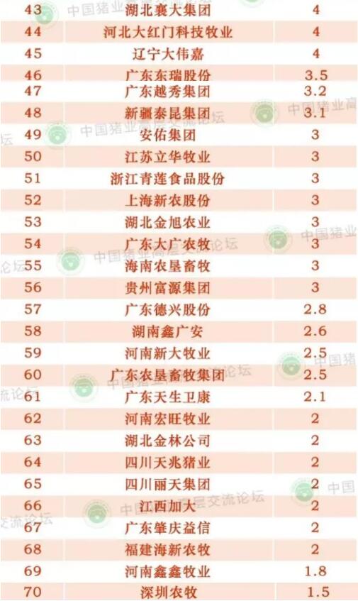 近日,一份由中國豬業(yè)高層交流論壇整理發(fā)布的“中國養(yǎng)豬百強(qiáng)企業(yè)”排名重磅公布。