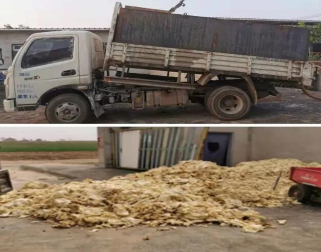 液態(tài)飼喂可使用當地的非常規(guī)原料,如糕點渣、方便面渣、豆腐渣、雜粕等。2021年6月份之前,老陳大量使用配烤鴨的面皮,面皮中含有6%的油,營養(yǎng)價值較高,其價格是小麥的一半。之后因模仿“陳氏養(yǎng)豬法”的人越來越多,貨源有限且價格上漲,老陳就使用當地淀粉廠的淀粉湯,成本更低,造肉成本不超過10元/公斤。