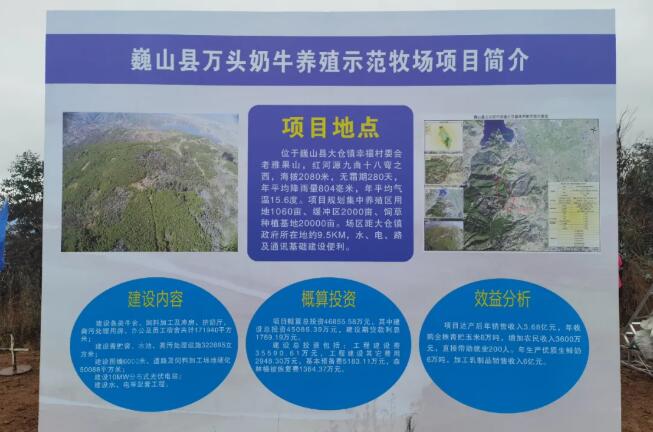 巍山縣萬頭奶牛養(yǎng)殖示范牧場項(xiàng)目規(guī)劃集中養(yǎng)殖區(qū)用地1060畝、隔離緩沖種植用地2000畝、優(yōu)質(zhì)飼草飼料種植基地20000畝。項(xiàng)目概算總投資46855.58萬元,規(guī)劃建設(shè)各類牛舍、飼料加工及庫房、擠奶廳、糞污處理用房、辦公及員工宿舍共計(jì)171940平方米,青貯窖水池、污水處理池322895立方米,圍墻6000米,道路及飼料加工場地硬化50088平方米,10MW分布式光伏電站以及水、電等配套工程。項(xiàng)目建成后通過租賃方式交由云南皇氏來思爾智能化乳業(yè)有限公司運(yùn)營,著力打造荷斯坦奶牛核心群育種、性控高效擴(kuò)繁、智能化養(yǎng)殖一體化,種養(yǎng)結(jié)合、農(nóng)牧循環(huán)、農(nóng)文旅結(jié)合的集約化、標(biāo)準(zhǔn)化、綠色有機(jī)示范牧場。