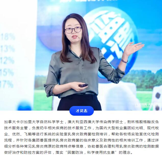 利用乳房炎病原診斷數(shù)據(jù)主要從四個方面:一是監(jiān)控病原的流行狀況,積累臨床乳房炎病例數(shù)據(jù),幫助牧場建立乳房炎病原菌數(shù)據(jù)庫,及時揭發(fā)傳染性病原的感染牛,清晰了解牧場乳房炎主要是由哪種病原菌導(dǎo)致的。新的病原也可以做到實(shí)時監(jiān)控。二是優(yōu)化治療方案,基于對不同病原的清楚了解,針對某種病原的治愈預(yù)期會有判斷。還有無生長病例要不要使用抗生素?知道革蘭氏陽性菌和陰性菌的區(qū)別,能夠幫助牧場明確治療的側(cè)重點(diǎn),比如陰性菌要更重視抗炎。三是利用病原診斷數(shù)據(jù)優(yōu)化防控方案。最后是明確淘汰的決策。