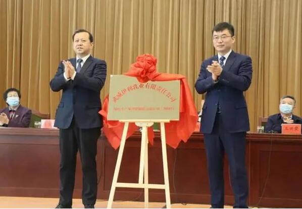 市委書記柳鵬與伊利集團副總裁蘇玉峰為武威伊利綠色生產(chǎn)及智能制造示范應(yīng)用二期項目揭牌。