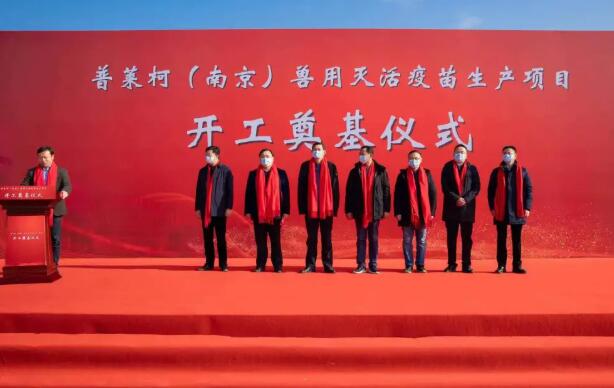12月30日上午,普萊柯(南京)生物工程有限公司獸用滅活苗項目工程奠基儀式在江寧空港順利舉行。江蘇省農(nóng)業(yè)農(nóng)村廳畜牧獸醫(yī)局局長時勇、江寧開發(fā)區(qū)管委會副主任崔吉勝等主要領(lǐng)導(dǎo)蒞臨儀式現(xiàn)場,普萊柯股份公司副董事長秦德超、總經(jīng)理胡偉、普萊柯(南京)公司全體中高層領(lǐng)導(dǎo)出席活動,并為項目奠基。南京公司員工、總包單位、監(jiān)理單位、設(shè)計單位等項目相關(guān)單位代表約120人參與此次活動。奠基儀式由普萊柯(南京)公司總經(jīng)理盧士福主持。