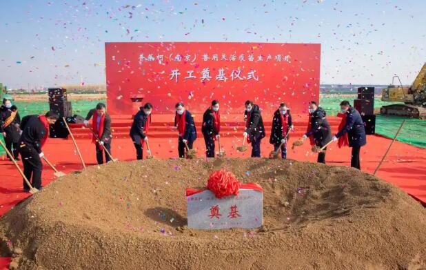 最后,在熱烈的掌聲中,與會領(lǐng)導(dǎo)、嘉賓共同來到奠基池旁,為普萊柯(南京)獸用滅活苗項目培土奠基。