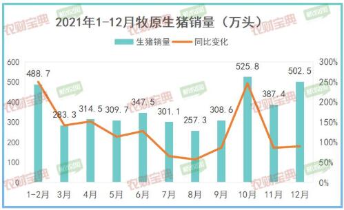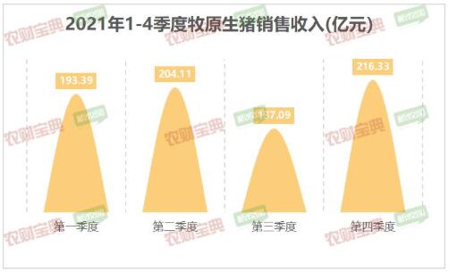 2021年第四季度,牧原生豬銷量顯著增長,10月出欄量最高,達(dá)525.8萬頭,同比增長246.83%。 四季度累計(jì)生豬銷量1415.7萬頭,累計(jì)銷售收入216.33億元,均高于前三季度。