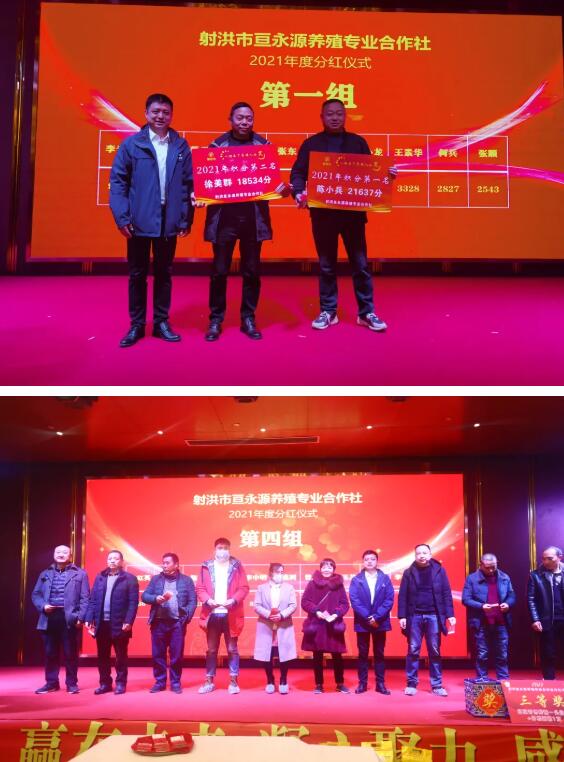 射洪亙永源養(yǎng)殖專業(yè)合作社于2020年1月8日成立,至2021年底已發(fā)展社員,113名。社員遍及射洪各地,幾乎囊括了射洪地區(qū)最大的幾個(gè)豬場,是射洪市目前首屈一指的專業(yè)農(nóng)業(yè)合作社,具有較大的影響。合作社社員現(xiàn)有養(yǎng)殖總存欄3200余頭母豬,3萬余頭商品豬,共計(jì)年出欄肥豬10萬余頭。合作社2021年榮獲“遂寧市市級示范社”稱號。值得一提的是,此次分紅大會還受到射洪電視臺的全程跟蹤報(bào)道。
