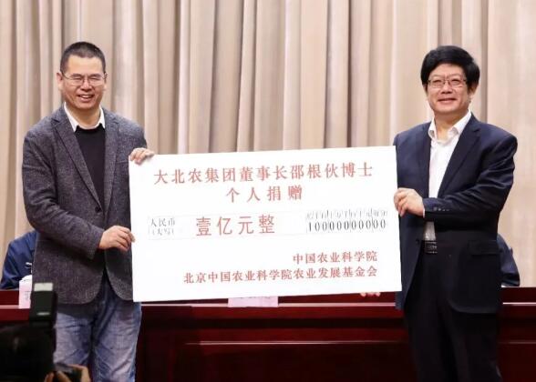 會(huì)議開(kāi)幕式上舉行了捐贈(zèng)儀式,大北農(nóng)集團(tuán)董事長(zhǎng)邵根伙博士以個(gè)人名義向中國(guó)農(nóng)業(yè)科學(xué)院捐贈(zèng)人民幣1億元,設(shè)立“中國(guó)農(nóng)業(yè)科學(xué)院-大北農(nóng)三創(chuàng)協(xié)同獎(jiǎng)”,助力中國(guó)農(nóng)科院“三創(chuàng)”事業(yè)發(fā)展。大北農(nóng)集團(tuán)董事長(zhǎng)邵博士、副總裁王丹玉出席捐贈(zèng)儀式。