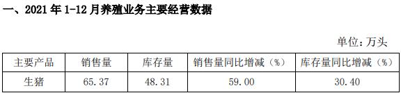 1月13日,神農(nóng)集團(tuán)發(fā)布2021年1-12月養(yǎng)殖業(yè)務(wù)主要經(jīng)營數(shù)據(jù):