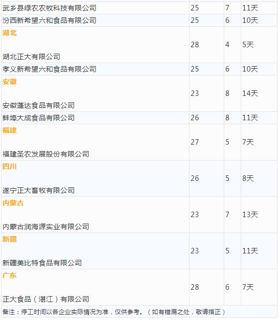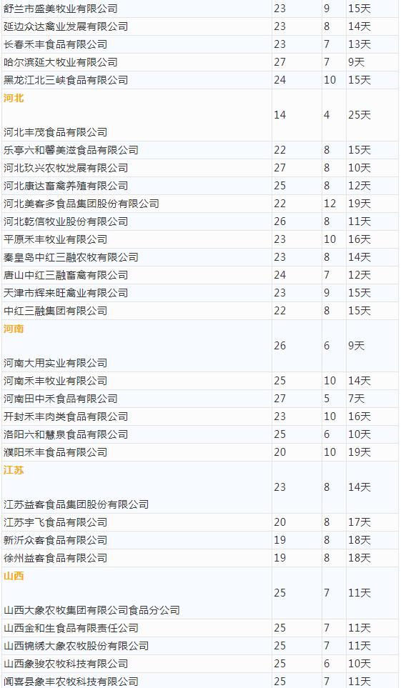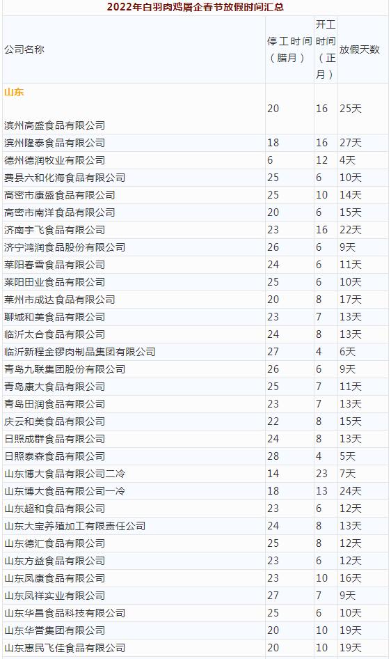 2022年全國(guó)147家白羽肉雞屠企春節(jié)放假時(shí)間匯總