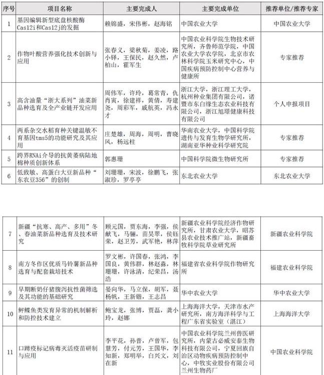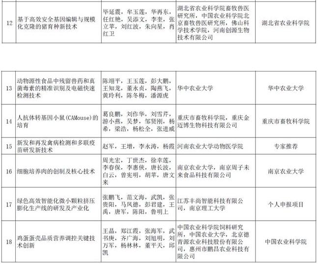 第十二屆大北農(nóng)科技獎授獎名單
