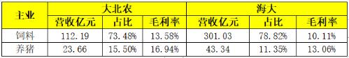 從銷量來看,海大禽料占一半,豬料占20%以上,水產(chǎn)飼料占20%以上;而大北農(nóng)銷售的70%是豬料,禽料、水產(chǎn)、其它各占10%。